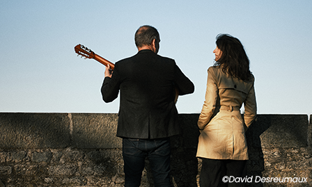 Sur scène, comme sur un plateau de tournage, avec ses clairs obscurs, ses travellings, ses nuits américaines, Chloé Lacan et Thibaud Defever se font leur cinéma. Ils chantent, jouent, dialoguent, mettent en lumière, esquissent un pas de danse et nous entraînent dans un hommage au 7ème art, une comédie musicale qui ne se prend pas au sérieux où guitare, accordéon, voix et percussions revisitent des airs connus et moins connus. Du Mépris de Godard au Cabaret de Bob Fosse en passant par Peau d’Ane, Orphéo Negro et Cria Cuervos, ces deux amoureux des salles obscures prennent plaisir à mélanger les styles, les langues, les souvenirs et déroulent à nos oreilles leur bande originale idéale.